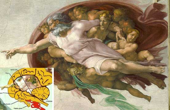 Michelangelo was not only a painter but a scientist as well he dissected the human body and knew all of the shapes of it its parts. He gives us a picture into the mind of the church and we see he realizes what all elect men of G-d know to be true. G-d is only in their mind he could have drawn a human heart with four bodies at the valves chambers with G-d being the center but he did not. He did this deliberately knowing others would see it but them. A secret message and a one finger salute to the people who commissioned him.