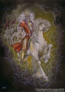 His head and his hairs were white like wool, as white as snow; and his eyes were as a flame of fire; And his feet like unto fine brass, as if they burned in a furnace; and his voice as the sound of many waters. And he had in his right hand seven stars: and out of his mouth went a sharp twoedged sword: and his countenance was as the sun shineth in his strength.